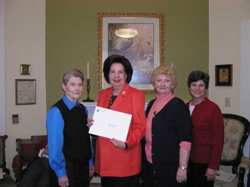 LGCF members: Martha McBurney, Petals Shell Grant Chairman, Margie Jones, 2nd Vice President , Mary Sue Colvin, President, and Michele Hazard, District II Director Shell Grant presented to Margie Jones, representing Creative Planters Garden Club for a butterfly education program for schools in the Norco - Destrehan area. |